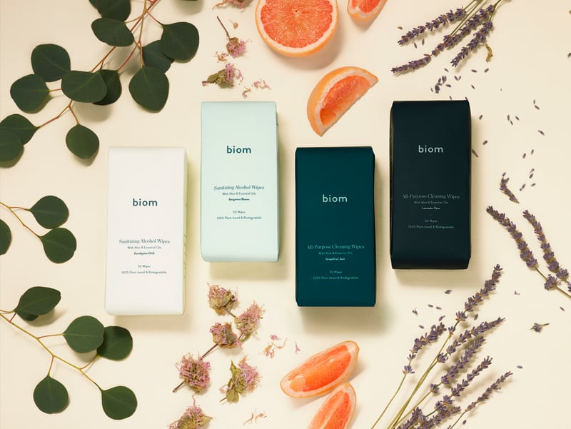 Design-driven and planet-approved, biom offers 100 percent plant-based, biodegradable wipes in innovative packaging. We caught up with the two co-founders to learn more about how they’re disrupting the wipes category, building out their team in a remote environment, and more.